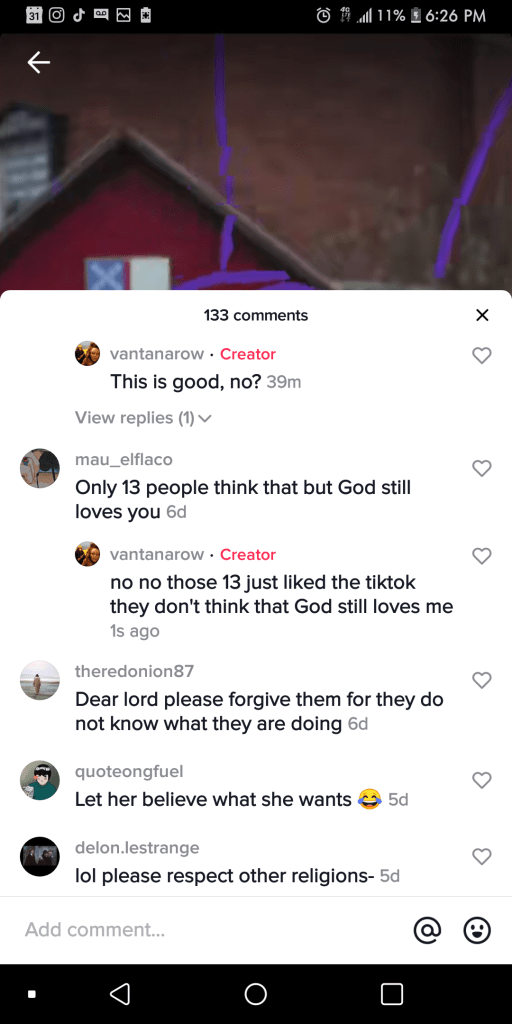 Add more information about yourself. I’m Christian, and a user on TIkTok. You, on the other hand, are going to hell.