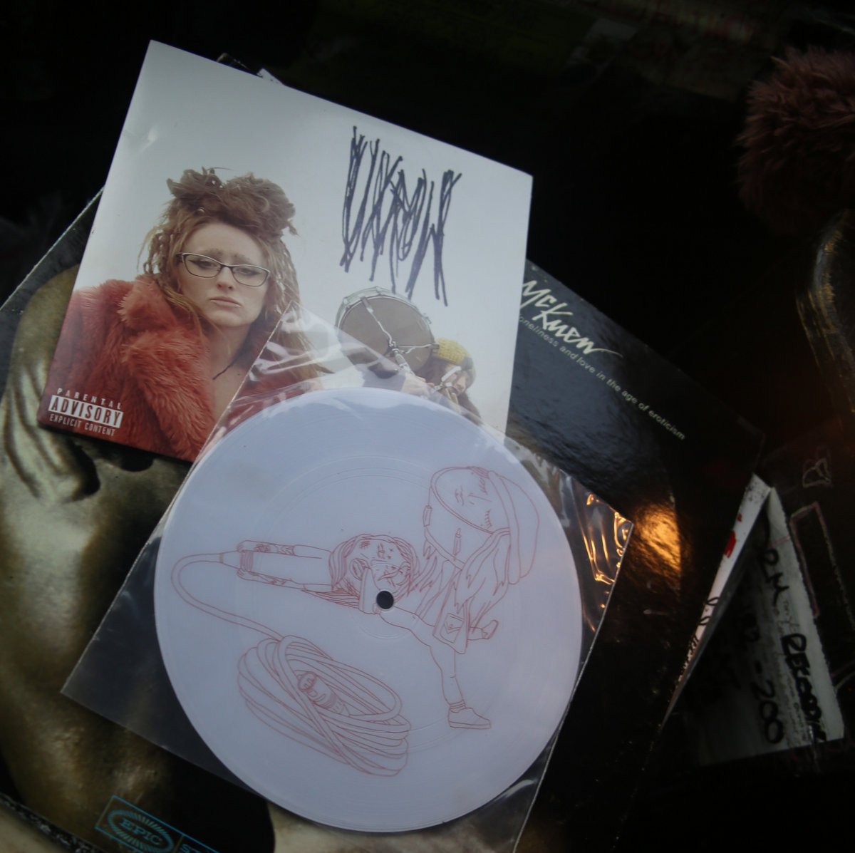 Plays at 33 1/3 rpm / Side A shown in photo. Includes double-sided printed lyric sheet inside, VXROW 2021 DRVBY TOUR Promo CD outside (containing two exclusive and unreleased tracks) and also stickers tf! “Y’all fr craz-‘”,.
